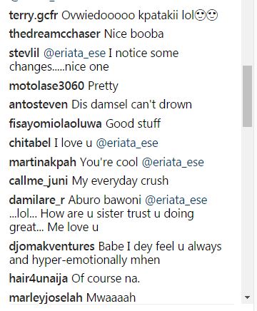 Model, actress, comedienne, singer and dancer, Eriata Ese has wowed her social media fans with her ravishing cleavage in a recent photo.