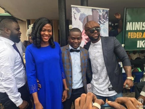 Don Jazzy's Mavin records star singer, Iyanya surprised some newly married couples at the Ikoyi Registry in the commercial city of Lagos this morning.