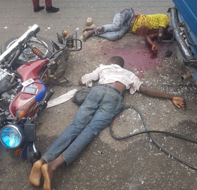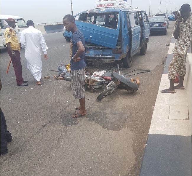 This scary accident reportedly happened on the 3rd mainland bridge, Lagos around 12:05pm leaving two casualties behind.