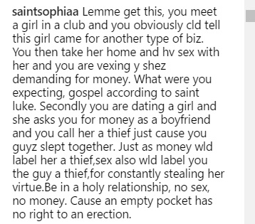 A Nigerian media personality has sparked outrage after taken to social media to say that any lady that asks for money after s*x is a thief.