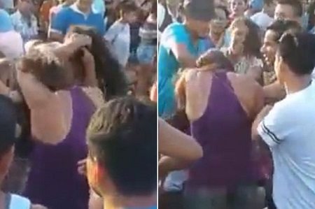 A religious festival has ended up in serious a fight when a woman spotted her husband canoodling with another woman who was obviously his lover among the tens of thousands of people in the crowd.