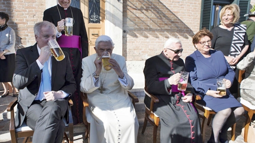 Ex-Catholic Pope, Benedict XVI Celebrates 90th Birthday by Drinking Beer with Family & Friends (Photos+Video)