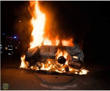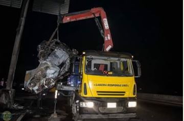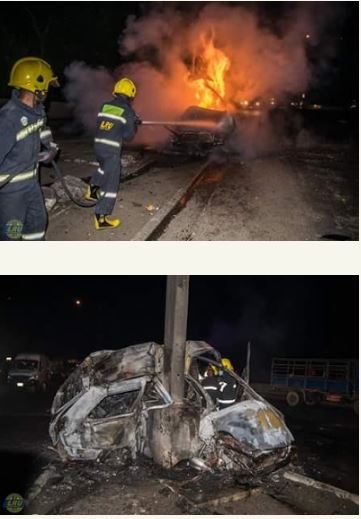 The LASEMA Response Unit fire team were on a rescue operation at Anthony Oke, Lagos after a car rammed into a billboard and caught fire in the early hours of Wednesday.
