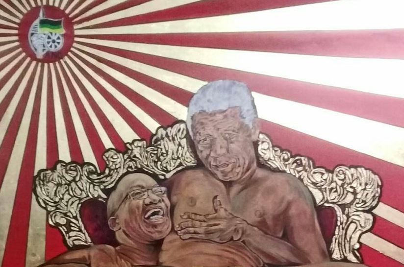 A controversial painting depicting late South African leader, Nelson Mandela performing a s*x act with incumbent President Jacob Zuma has caused commotion online.
