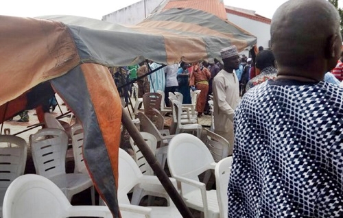 Angry supporters of Late Senator Adeleke collapsed a canopy on Gov. Amosun, Gov. Akeredolu, and others to chase out a commissioner nominee of Governor Rauf Aregbesola.