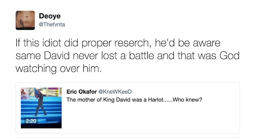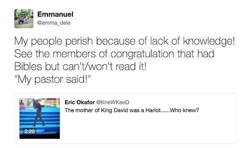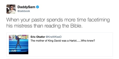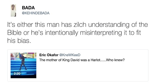 Many people have lambasted the man of God accusing him of twisting the bible as there is no mention of David's mother being a prostitute in the bible. The pastor had based his comment on a verse from the book of Psalms where David said, “in sin did my mother conceive me.” He misinterpreted it alleging that David's mother had him out of wedlock or through fornication.
