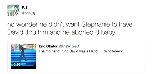 In the video, the man of God while trying to make a point why David had passed through a lot of troubles in his life had said the reason was because he had a 'foundation' problem. He said the foundation problem was as a result of David's mother who was a prostitute.