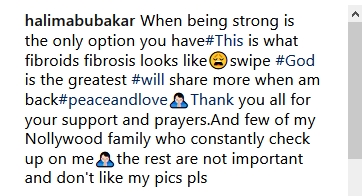 Still in India, Halima assured fans that she would share more details about her battle with fibroid on her return to Nigeria.