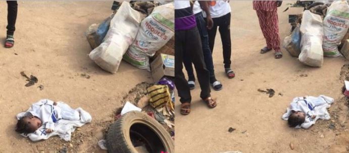 The baby was covered in a Celestial Church garment beside the stinking refuse dump. Nobody had any details about the identity of the parents of the innocent child whose fate is currently gloomy.