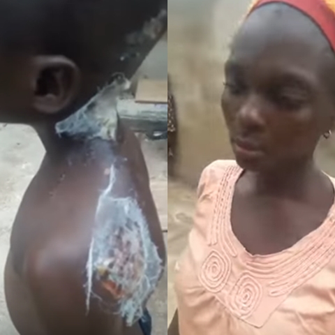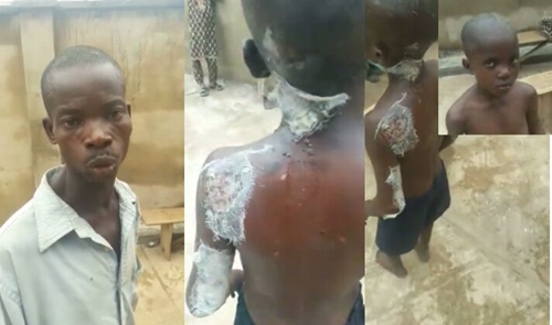 A video clip has emerged online showing how a 10-year-old boy identified simply as Lukman, was seriously beaten and set on fire on a local stove by his father for allegedly stealing in a Ibadan, the Oyo state capital.