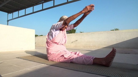 “I wear only our tradition sari. Still I can do more than 50 asanas,” Nanammal said. “I do yoga before I go to bed and I do yoga with my students when I get up in the morning. As far as my body is concerned, it keeps me flexible. I will stiffen up terribly if I didn’t do it.”