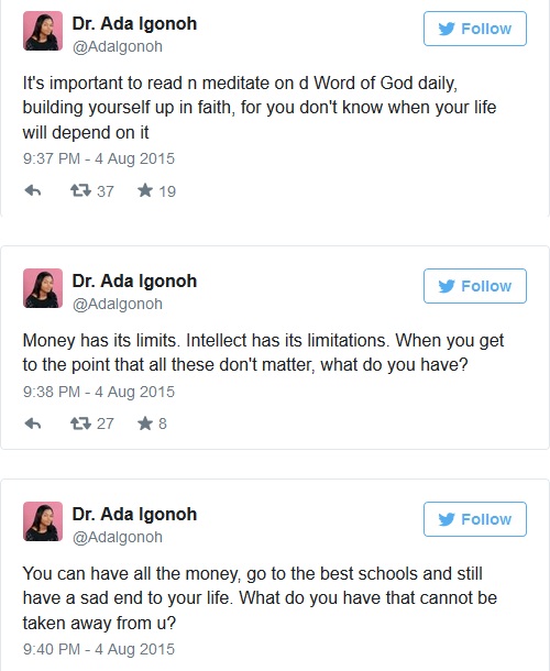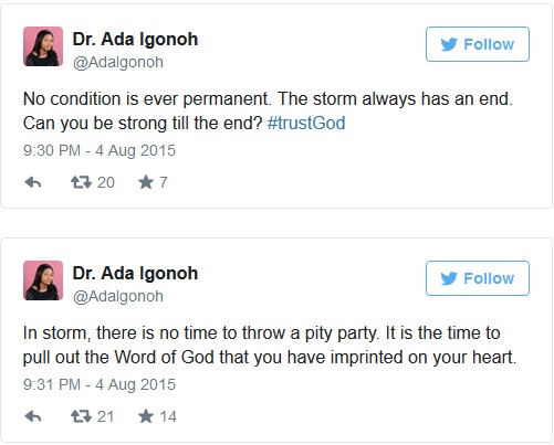 Below is how she shared her heart-wrenching story of unwavering faith on Twitter;