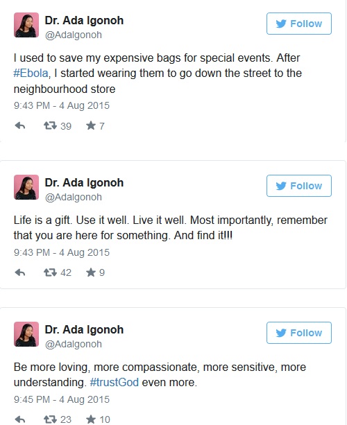 Ebola Virus survivor, Dr. Ada Igonoh, reminisces about that challenging period in her life, 1 year after contracting the disease.