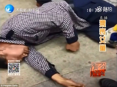 Child molester was caught touching a girl on a street in China plays dead to avoid arrest
