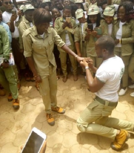A member of the National Youth Service Corps who just passed out has proposed to his fellow member during their passing out parade.