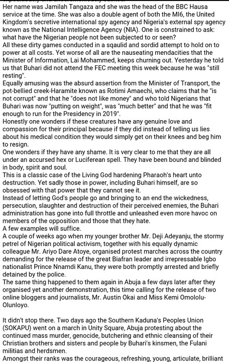 The truth is that President Muhammadu Buhari, his evil administration and those that they represent are venal and malevolent. They have been rejected by the Living God.