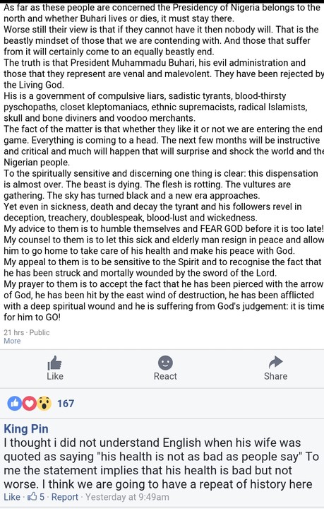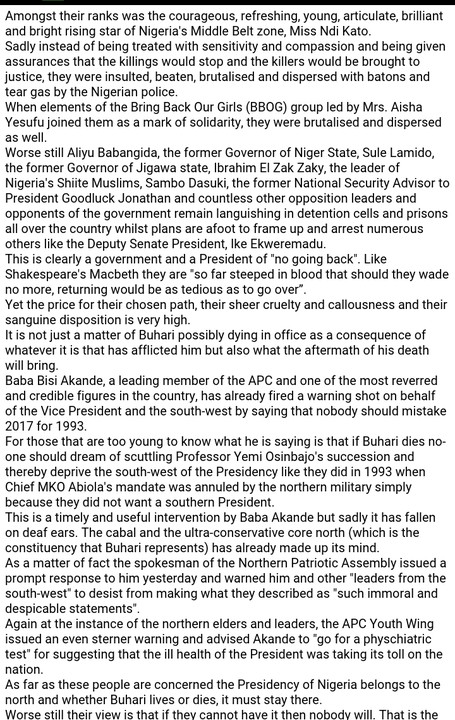 As far as these people are concerned the Presidency of Nigeria belongs to the north and whether Buhari lives or dies, it must stay there.