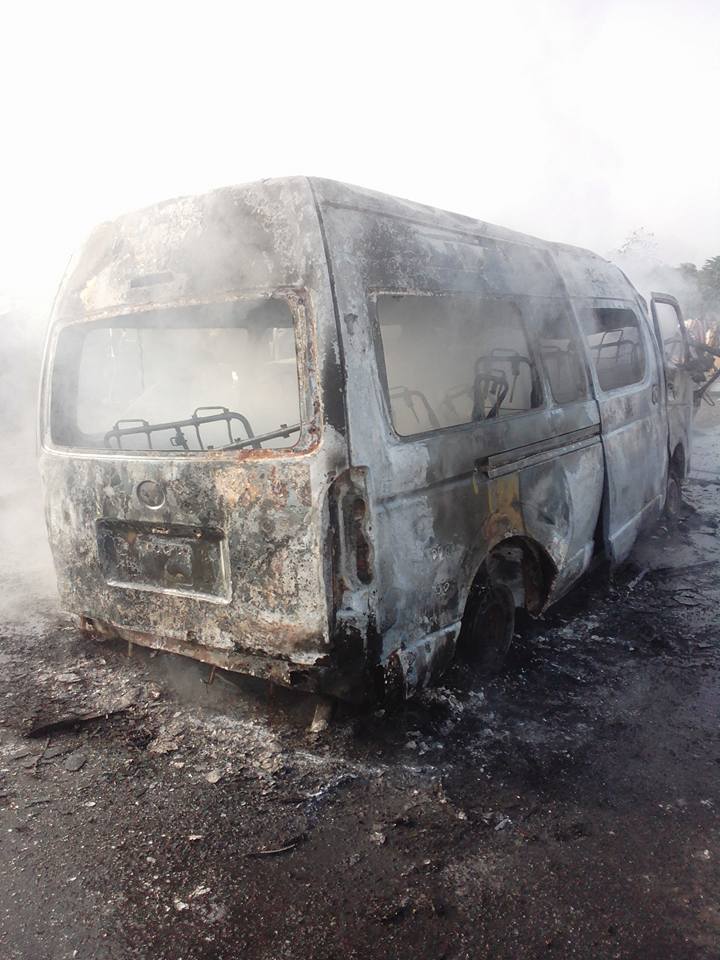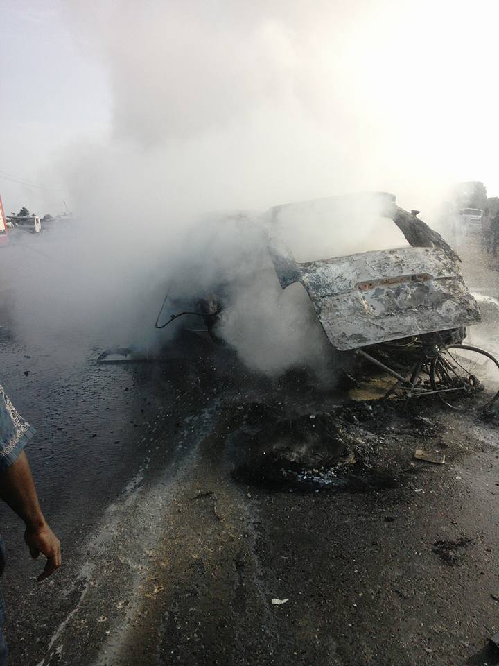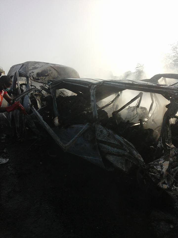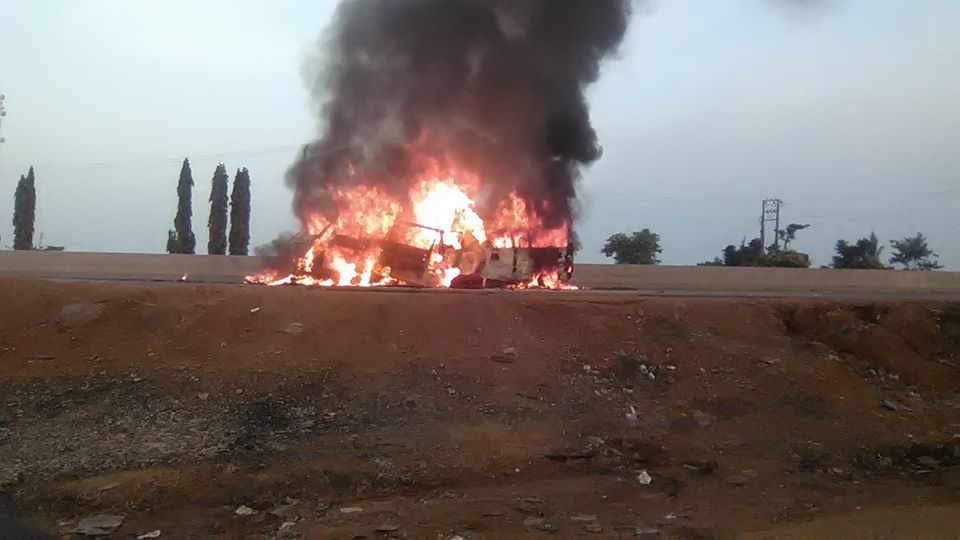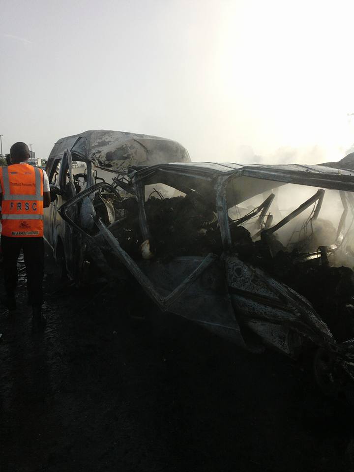 An eyewitness told NAN that the two 18-seater buses had a head-on collision and the buses caught fire immediately.