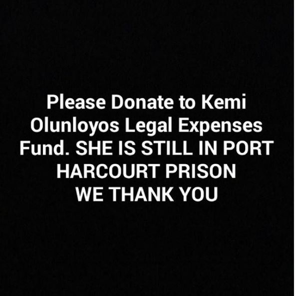 "Please Donate to Kemi Olunloyo's Legal Expenses Fund. She Is Still in Port Harcourt Prison. WE THANK YOU."