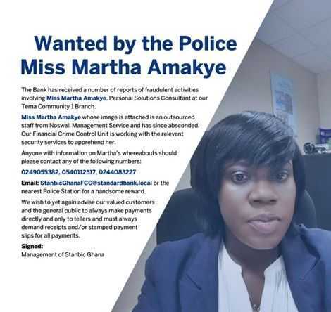 A criminal Stanbic IBTC staff who disappeared with customers' money has finally been arrested by policemen in Ghana.