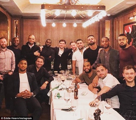 Anthony Joshua who is still basking in the euphoria of his recent victory over Wladimir Klitschko, has deemed it fit to hangout and enjoy a meal with the team that propelled him to boxing super-stardom.