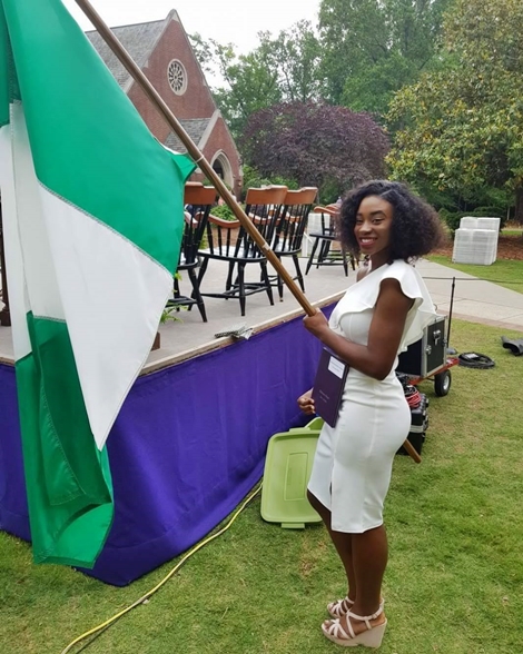 The latest graduate was surrounded by family and friends as she celebrated her latest milestone, exactly a year after her father completed a postgraduate course in History from Oglethorpe University, Atlanta, Georgia.