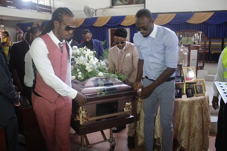 According to The Sun UK, Bolt, 30, who was one of the first on the scene after the crash on April 20, was a pallbearer at the church service in Kingston on Sunday.