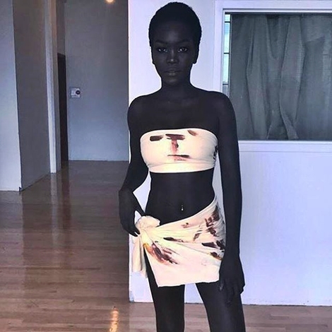 A South Sudanese-born model, Nyakim Gatwech has been nicknamed the "Queen Of Dark" because of her moonshine black skin.