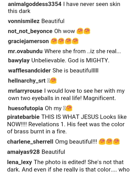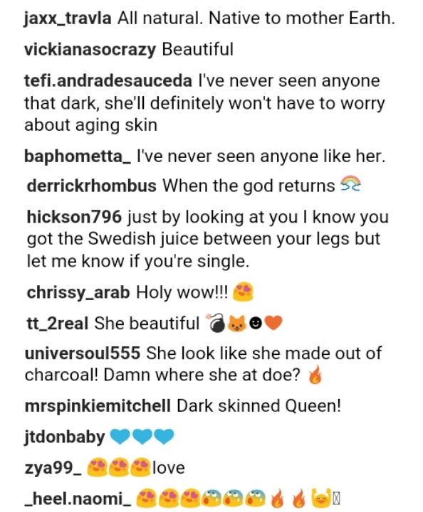 The hot model and make-up artist whose photos are currently making rounds on social media, is truly dark as the night and un-apologetically charcoal black.