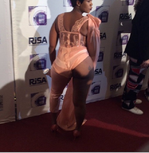 Viewers were greeted with an unfamiliar and shocking sight at the 23rd South African Music Awards after Skolopad showed off her enormous backside in revealing dress.
