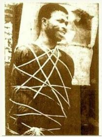 Trucks carrying Oyenusi and his executors arrived at the execution ground around 10:am. Doctor Oyenusi, his gang members and one other criminal got down slowly. People jeered and booed them, especially Oyenusi who they had really trooped out to watch die. Oyenusi donned a dark long-sleeve shirt and had his hands tied behind him. He was sweating profusely but managed to smile all the way to the stakes. He kept smiling, smiling and smiling but could still not hide the agony and terror written boldly on his face.