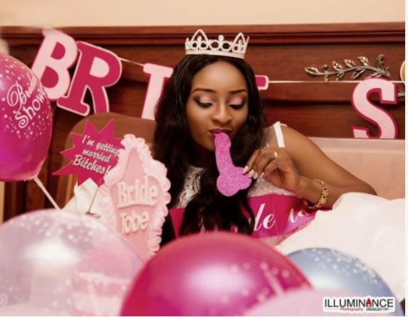 A young lady has hijacked the headlines controversially by apparently anticipating oral s*x in her bridal shower photoshoot.