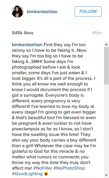 The pregnant mother shared the revealing snap with her fans on Instagram to dispel online rumours that she is using a surrogate and captioned it with a long explanation of her transforming figure.
