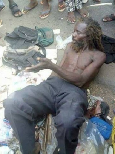 Photos making the rounds on Facebook, have shown an alleged mad man who was caught in Asaba with bags of used baby diapers.