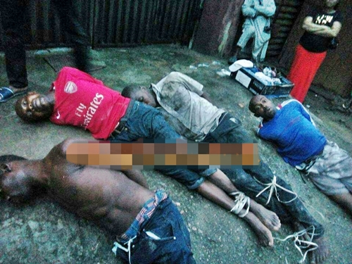 Jungle Justice: See What Angry Residents Did to Four Thieves Caught in Ojo, Lagos (Photos/Video)