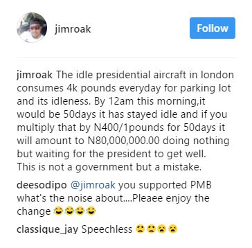 This has been revealed by a Nigerian based in the United Kingdom named Arake Akinwande who covertly made enquiries about the cost of the parking lot where the presidential private jet is expensively resting.
