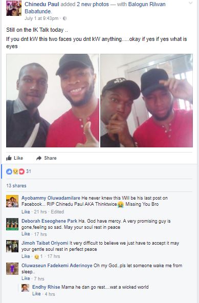 A hardworking Nigerian comedian, Chinedu Paul has met his untimely death in the hands of an angry mob who mistook him for a Badoo cultist.