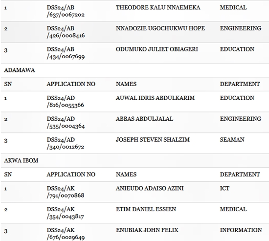 In a statement released in Abuja on Monday by the Acting Director of Information, Naval Headquarters, the Nigerian Navy released the list of names of successful candidates for its Direct Short Service Commission Course 24.