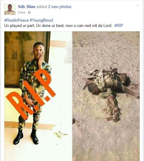 A young Nigerian soldier has met his untimely death in the hands of dreaded Boko Haram terrorists in Borno State. He was killed in a brutal fight with the insurgents.