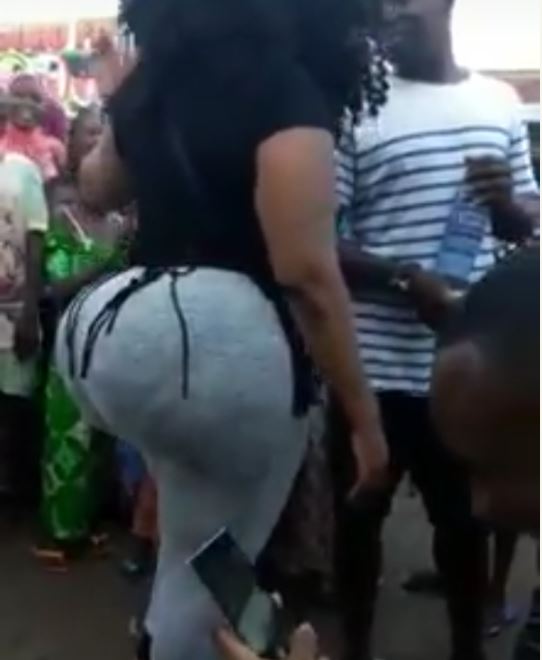 The massive backside of a lady dramatically turned her into a celebrity as she took a walk among a large crowd that gazed at her irregular bum.
