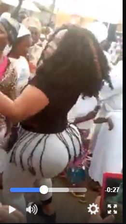 Have you ever imagined a situation whereby a lady would cause a scene with her huge bum? This was the situation in an unspecified locality in Nigeria where a curvy lady stormed a local party and swayed to an indigenous music - Davido's 'IF' hit track.