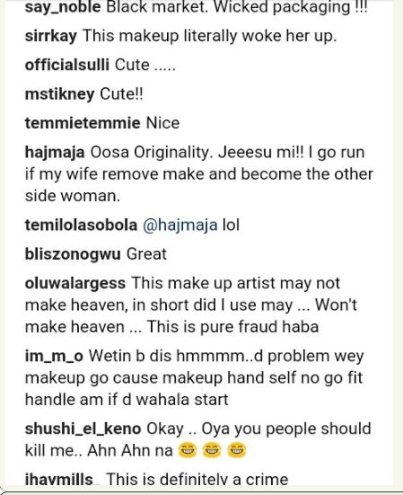 With the expertise of make-up artistes in Nigeria, one needs to bathe this lady with water to ascertain her real face.