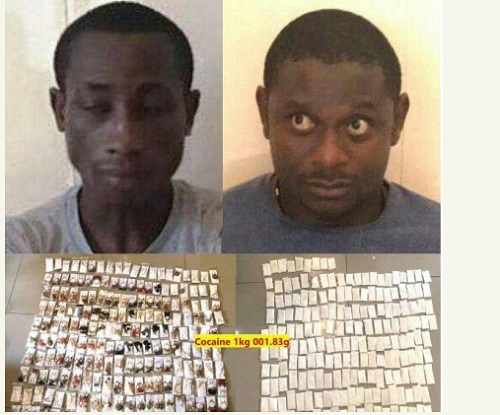 Okoro Chukwuka Boniface, 28, and Obiora Dozie Frank, 33, were caught by anti-drug police officers on Thursday in Phnom Penh after they imported the illicit drug from Colombia, the report said.