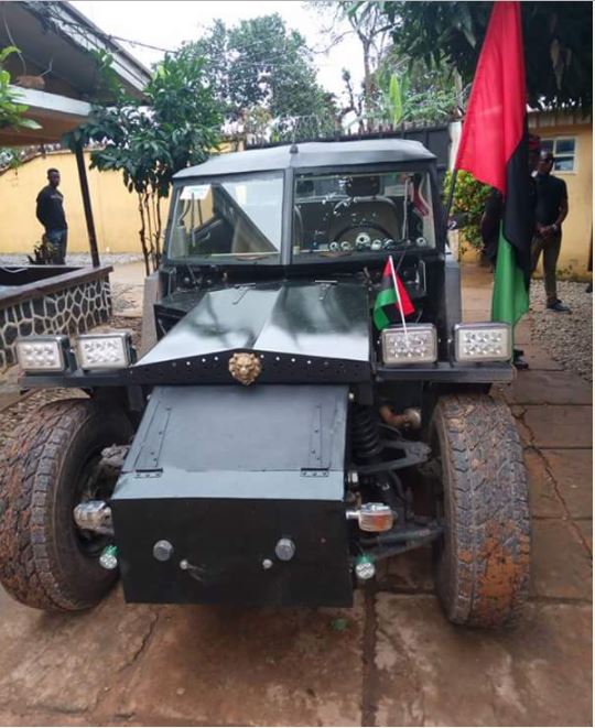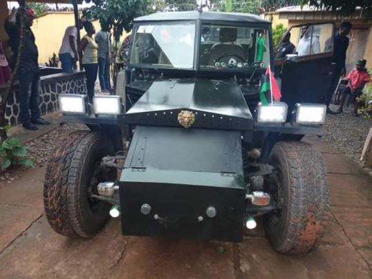 The combatant car pictured here was manufactured by Ephraim Alex Akwaiwu in Imo State. He said the 2017 model will be specially made for the leader of the Independent People of Biafra, Nnamdi Kanu.