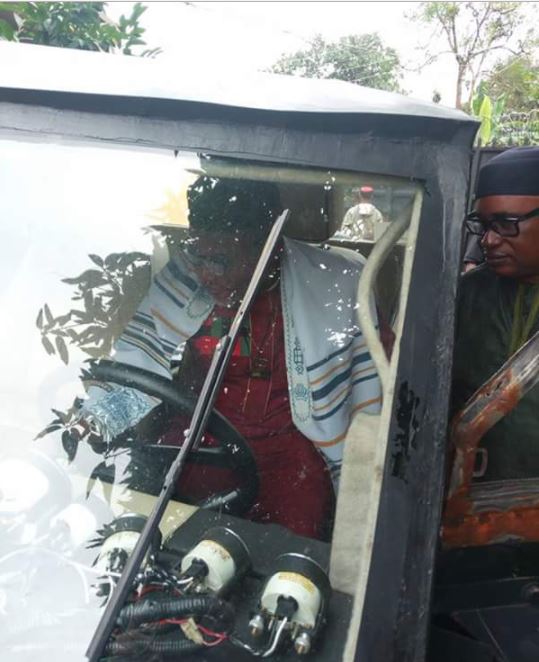 Mr. Kanu was pictured examining the efficacy of the vehicle after which he accepted the gift and commended the young man for the great feat.