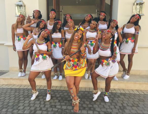 The woman dressed as a Zulu bride posed for photos with her beautifully dressed bridemaids who showed off the culture of South Africa.