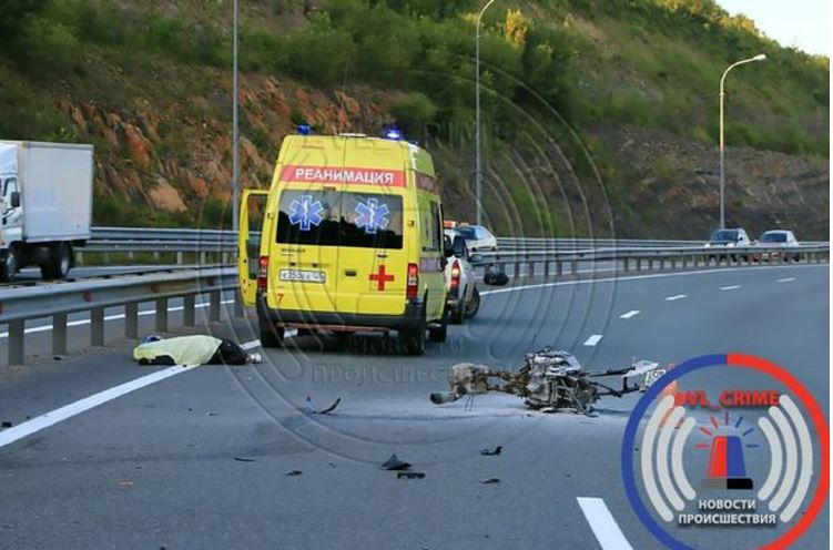 Olga Pronina, 40, lost control of her BMW motorcycle in the city of Vladivostok and was pronounced dead at the scene.