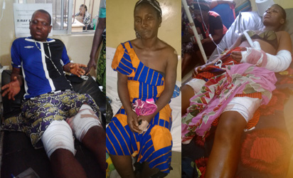 Samuel Ndulue (Middle) and other victims of the Ozubulu Catholic church attack yesterday (Photos: Vincent Ujumadu)
