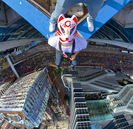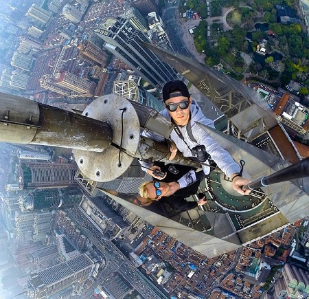 His activities recently lit up Chinese media thanks to a picture snapped from above China's fourth tallest building. He climbed the 450-meter Zifeng Tower in Nanjing, alongside notorious Russian rooftoppers, Vladimir Sidorov and Ivan Kuznetsov.
