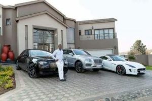 Prophet Shepherd Bushiri poses in front of his exotic mansion and fleet of cars